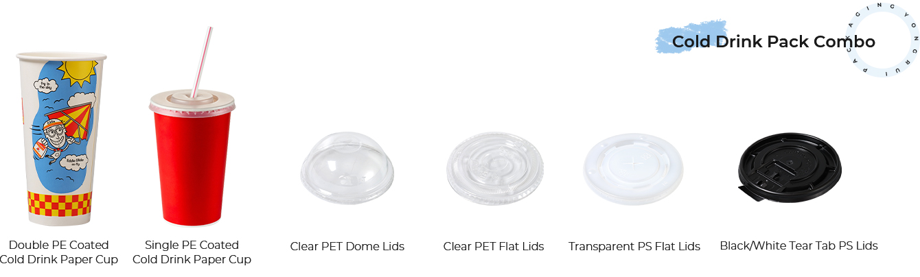 Yongrui Packaging tilbyder en række papirkopper og PET-kolde drikkekopper, kompatible med forskellige låg, kopholdere og sugerør, der passer til forskellige drikkevaretyper (varme drikke, kolde drikke, smoothies osv.). Med en one-stop-løsning til forskellige kunde- og markedsbehov, er Yongrui forpligtet til at give kaffebarejere og iværksættere pålidelig driftsstøtte.